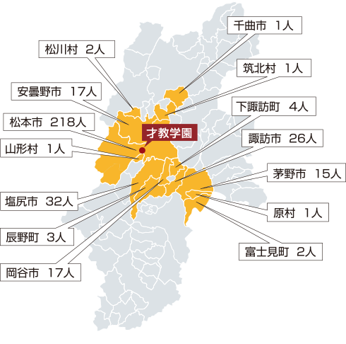 北は安曇野から、南は諏訪まで、幅広い範囲で送迎バスを運行しています。