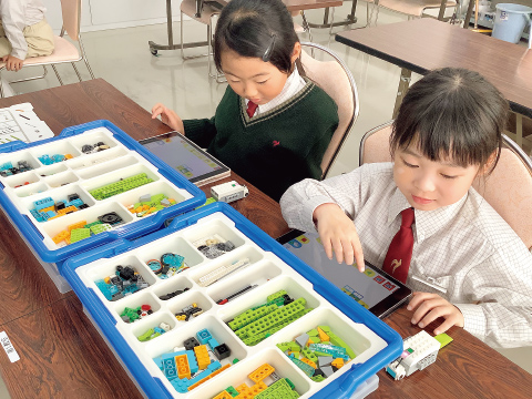 また1年生から始まるプログラミングの授業では、生徒たちはレゴブロックを組み立てて作ったロボットを、iPadで巧みに操作することができるようになりました。