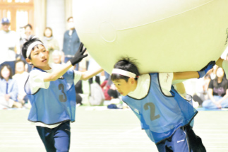 初めて体育祭に参加する1年生から、最後の体育祭となる9年生まで、チーム一丸となって全力を尽くしての真剣勝負を繰り広げる様子は本校の体育祭ならではの光景です。