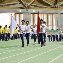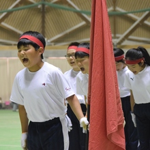 入場行進を終え、整列した生徒たちを前に、9年の根本くんが声高らかに開会を宣言しま...