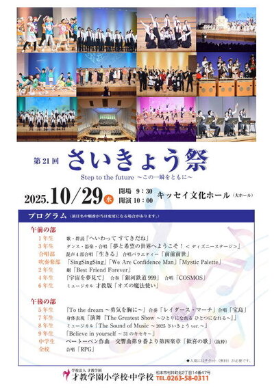 演目順については、PDFファイル(第21回 さいきょう祭プログラム(簡易版))をご参照ください。