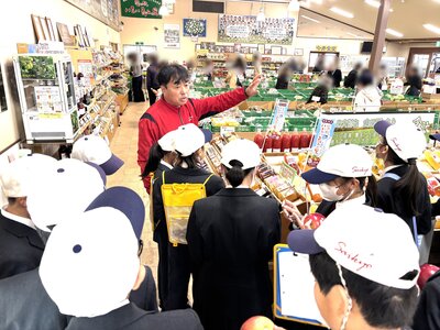 その後、道の駅で販売している商品の説明を受けて、加工所で製造工程を学習しました。現在も様々な商品を開発しているようです。生徒たちも「いいな!食べたい」とワクワクしていました。