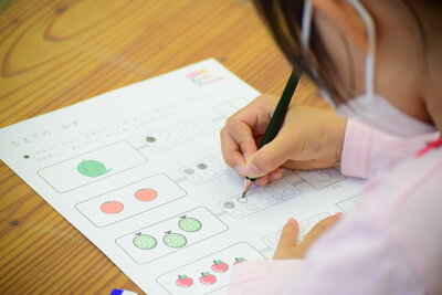 遊びの要素を随所に入れ、楽しみながら「もじ」「かず」「えいご」を学んでいく、毎年好評をいただいている年長児対象の小学準備講座です。