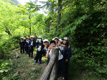 4~8年生は普段の始業より約1時間早く登校し、やぶはら高原スキー場(木祖村)へ向けて出発。